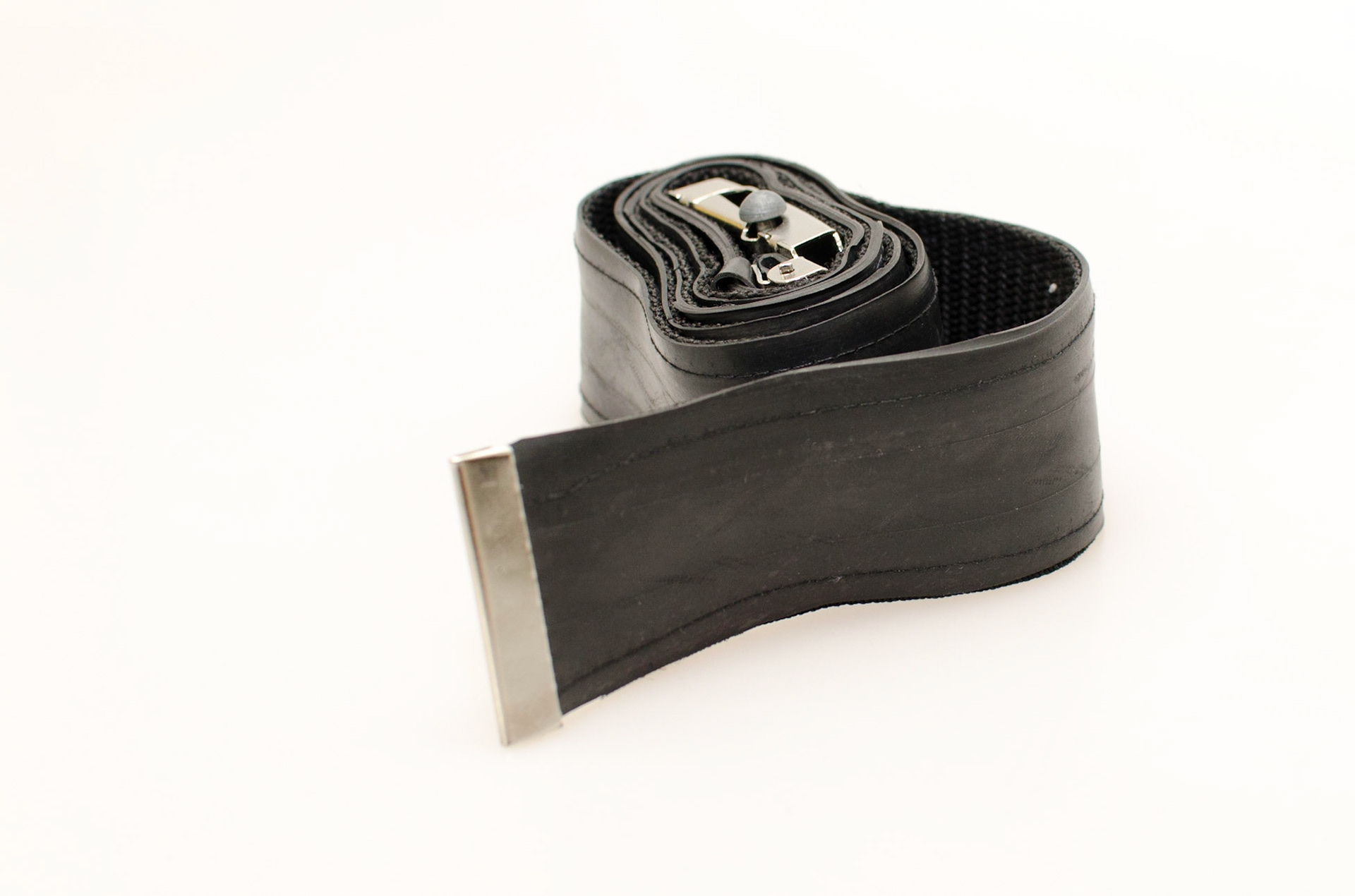 Einfach und geschickt, hier aus Feuerwehr- oder Fahrradschlauch. Die Größe muß natürlich angepasst sein.